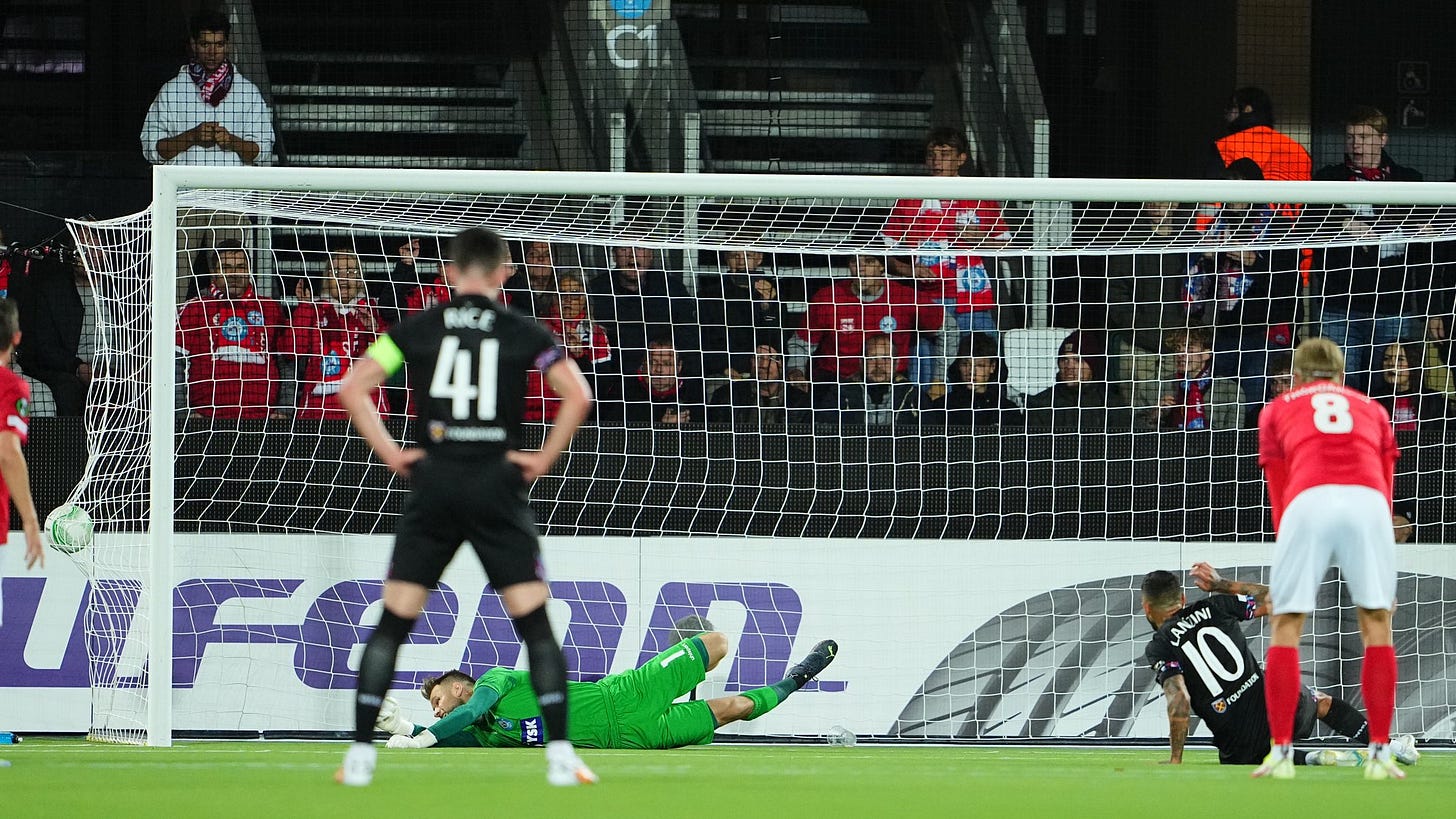 Areola’s performance was also concerning. He was left flat-footed by Kasper Kusk in the fifth minute and was bailed out by the referee just before the interval. Again, the Frenchman’s aerial shakiness proved to be problematic.